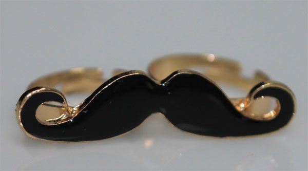 NOVELTY BLACK MUSTACHE SHAPED DUAL FINGER BRASS RING **|**|** NOVELTY BLACK MUSTACHE SHAPED DUAL FINGER BRASS RING ADJUSTABLE RING SIZE ; MSRP: $0