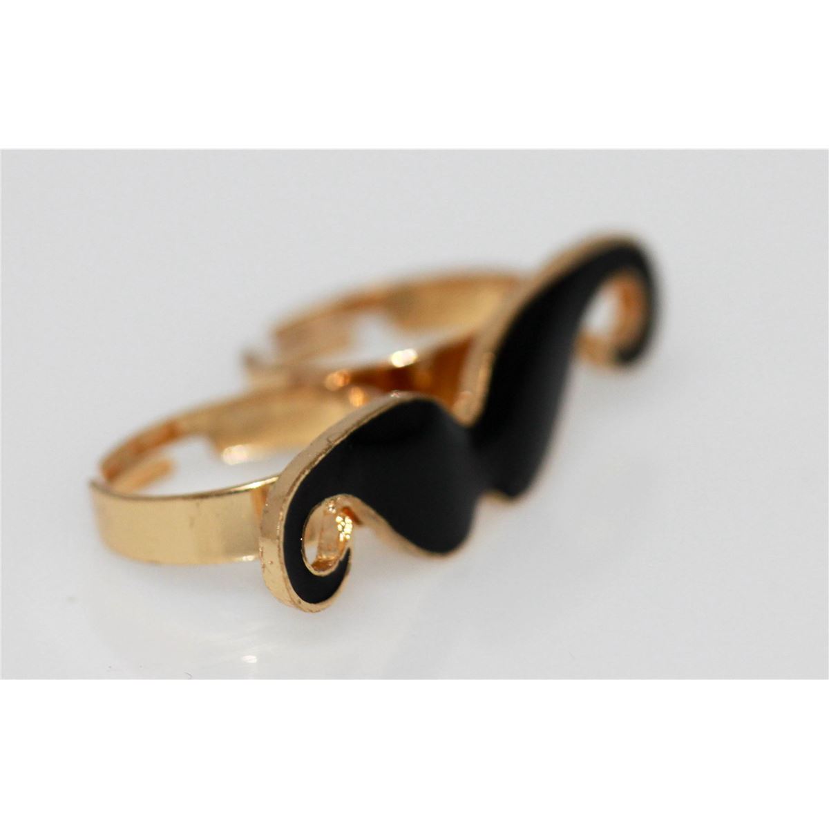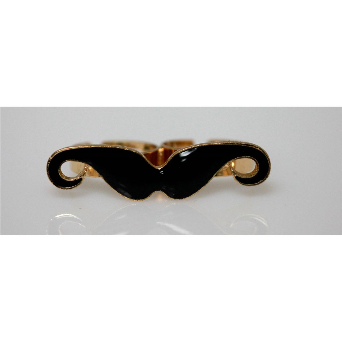 NOVELTY BLACK MUSTACHE SHAPED DUAL FINGER BRASS RING **|**|** NOVELTY BLACK MUSTACHE SHAPED DUAL FINGER BRASS RING