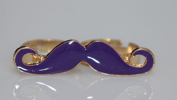 NOVELTY PURPLE MUSTACHE SHAPED DUAL FINGER BRASS RING **|**|** NOVELTY PURPLE MUSTACHE SHAPED DUAL FINGER BRASS RING ADJUSTABLE RING SIZE ; MSRP: $0