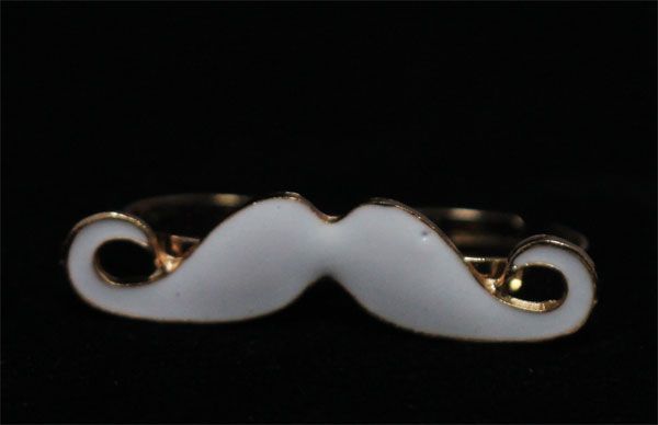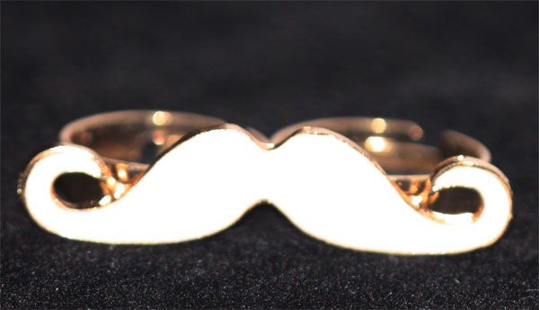 NOVELTY WHITE MUSTACHE SHAPED DUAL FINGER BRASS RING **|**|** NOVELTY WHITE MUSTACHE SHAPED DUAL FINGER BRASS RING ADJUSTABLE RING SIZE ; MSRP: $0