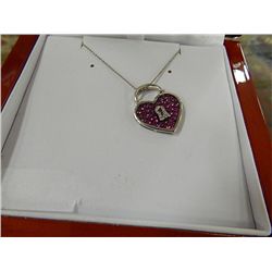 SILVER NECKLACE - HEART LOCK - WITH 11 DIAMONDS & 41 PINK CRYSTALS - .925 SILVER - MADE IN ITALY - INCLUDES CERTIFICATE $615