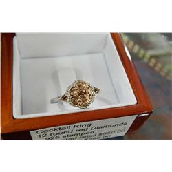 RING-COCTAIL RING - CERTIFICATE ESTIMATE $550 12 ROUND RED DIAMONDS - .925 SILVER