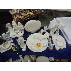 LOT OF ASSORTED FINISHED/UNFINISHED BAKED CERAMICS - (ON BLUE CLOTH)