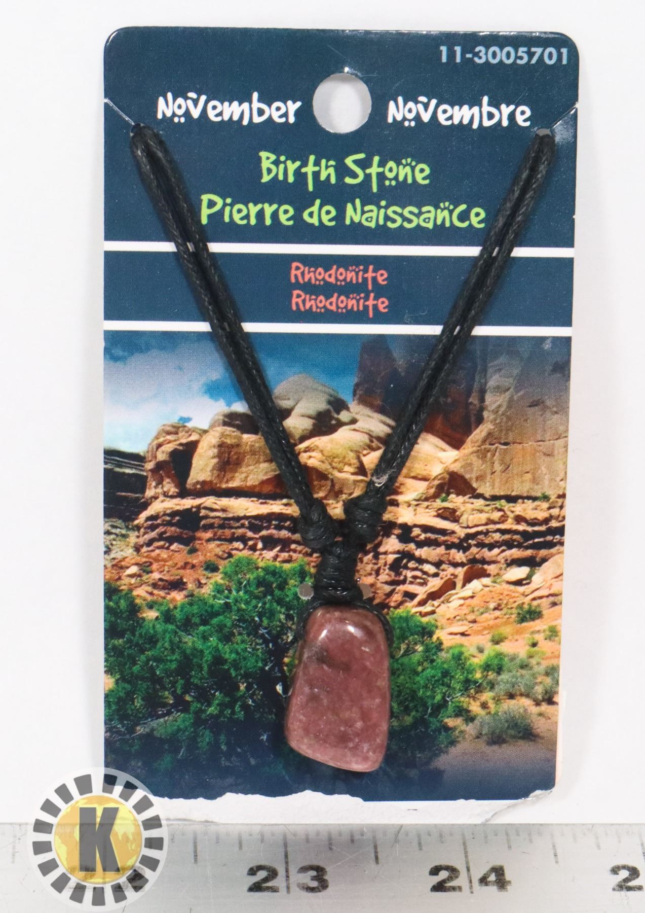 NOVEMBER BIRTH STONE RHODONITE ON CORD