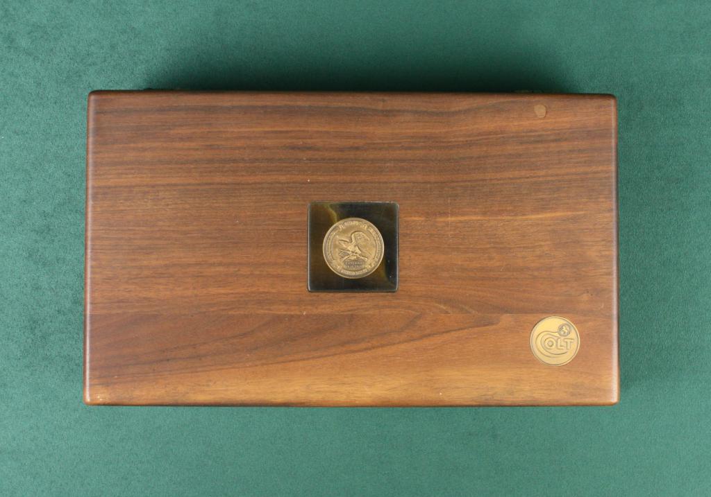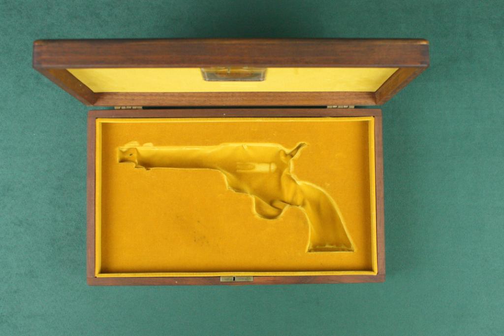 NRA First 100 Years Commemorative Colt SAA revolver wood presentation case only; for a 5-1/2” barrel Colt with yellow lining in overall fine condition. Est.: $100-$200.