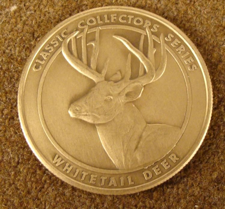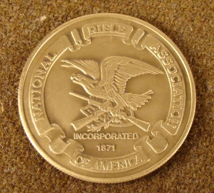 NRA/NATIONAL RIFLE ASSN COLLECTOR'S MEDALLION-BRASS -WHITETAIL DEER-1 1/2" DIAM * * HAS NRA EAGLE & RIFLE INSIGNIA ON FRONT--REVERSE WHITETAIL DEER.--RIBBED EDGE *