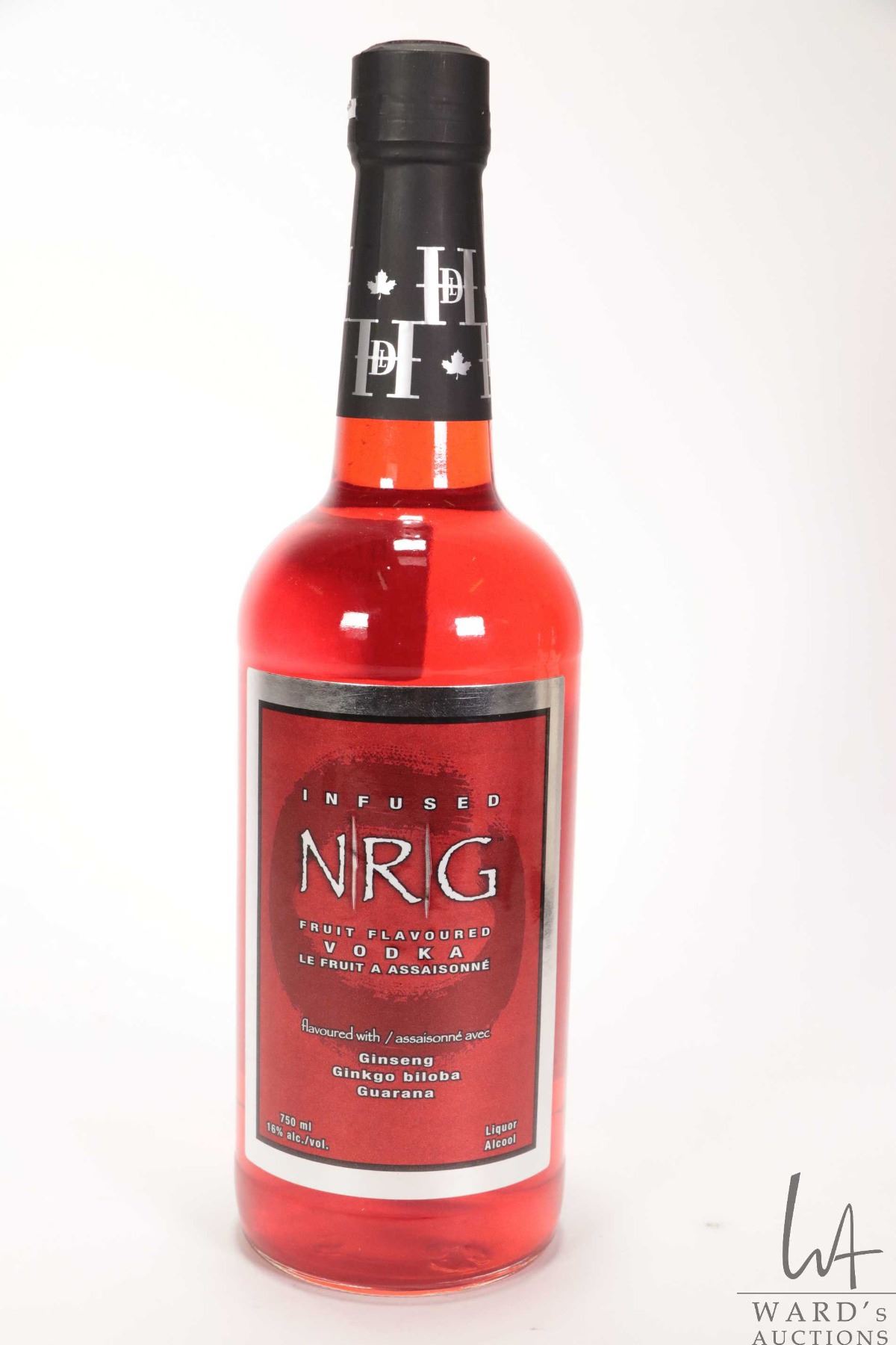NRG/ Infused Vodka Fruit Flavoured Ginseng/ 750ml/ 16% ABV Note: Alcohol cannot be insured by any courier in Canada. Local pick up is recommended. Canadian bidders only.