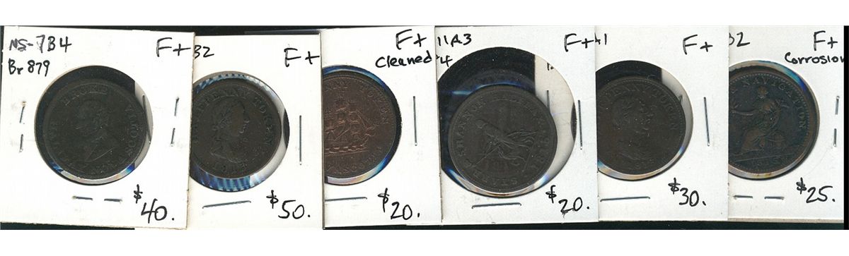 NS-7B4, 10B2, 11A1, 11A3, 14A1 & 19B2 all F+. Lot of 6 tokens. (PBBC).