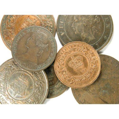 Half Cent 1861 and 1864 two pieces. Plus Cent 1861 two pieces. New Brunswick Cent 1864 and Prince Edward Island Cent 1871. Seven pieces, VF or better