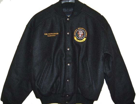 National Security Council (NSC) jacket with NSC seal on the left side. The phrase ''The White House'' is embroidered on the right-hand side. High quality jacket made of wool. Comes in size M-L. Great item.