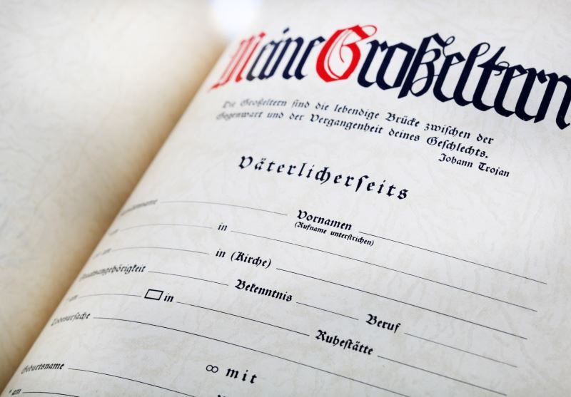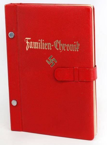 Nazi era German National Socialist family chronicle book, with Ordensberg Volgelsang stamp on inside cover. Very good condition. This lot has a reserve.
