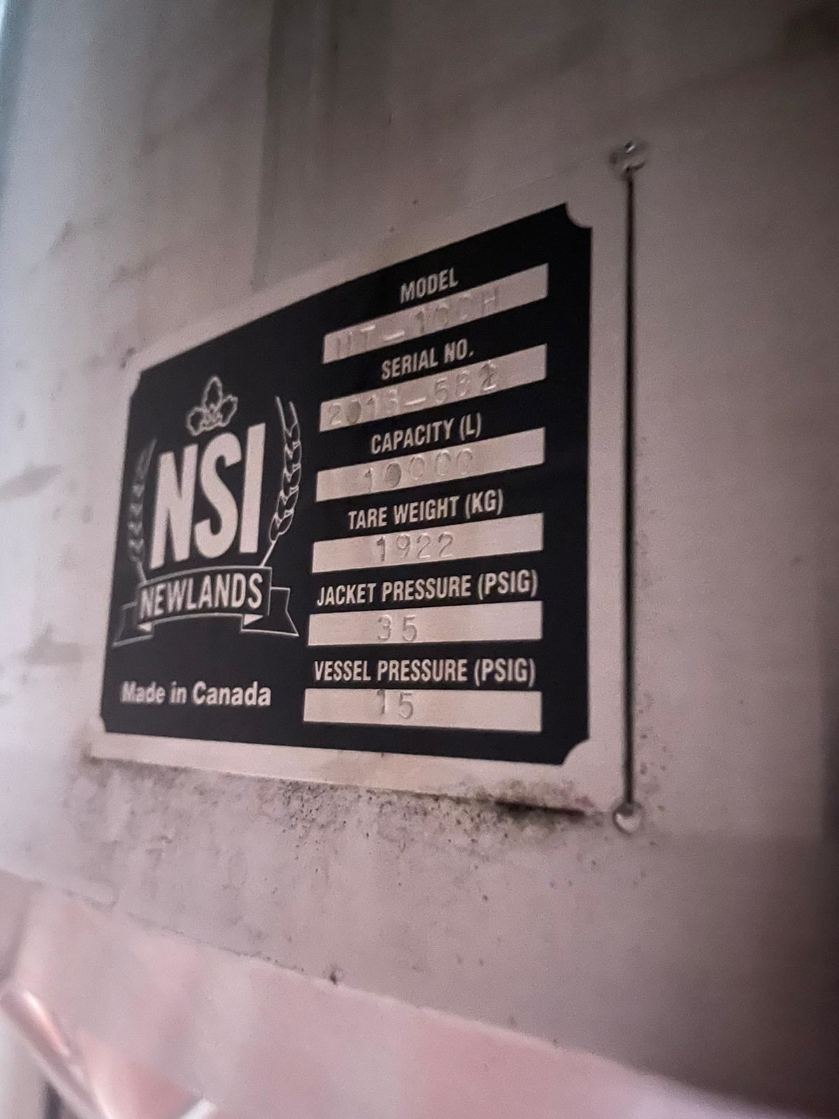 NSI Newlands - 10,000 Litres Fermentation Tank (Unitank) - Model:UT-100H Replacement Value: $45,000