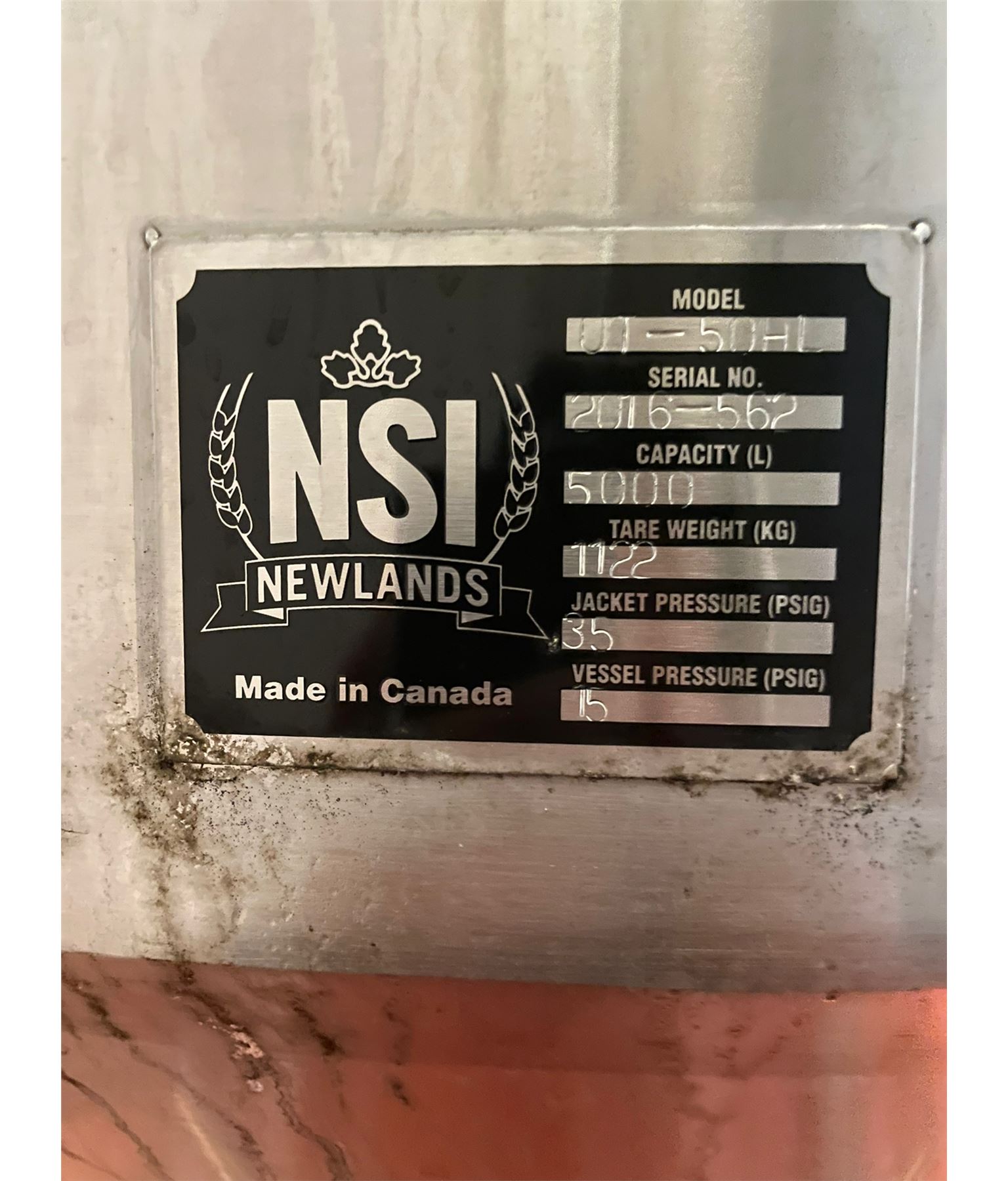 NSI Newlands - 5000 Litres Fermentation Tank (Unitank) - Model: UT- 50HL Replacement value $27,000
