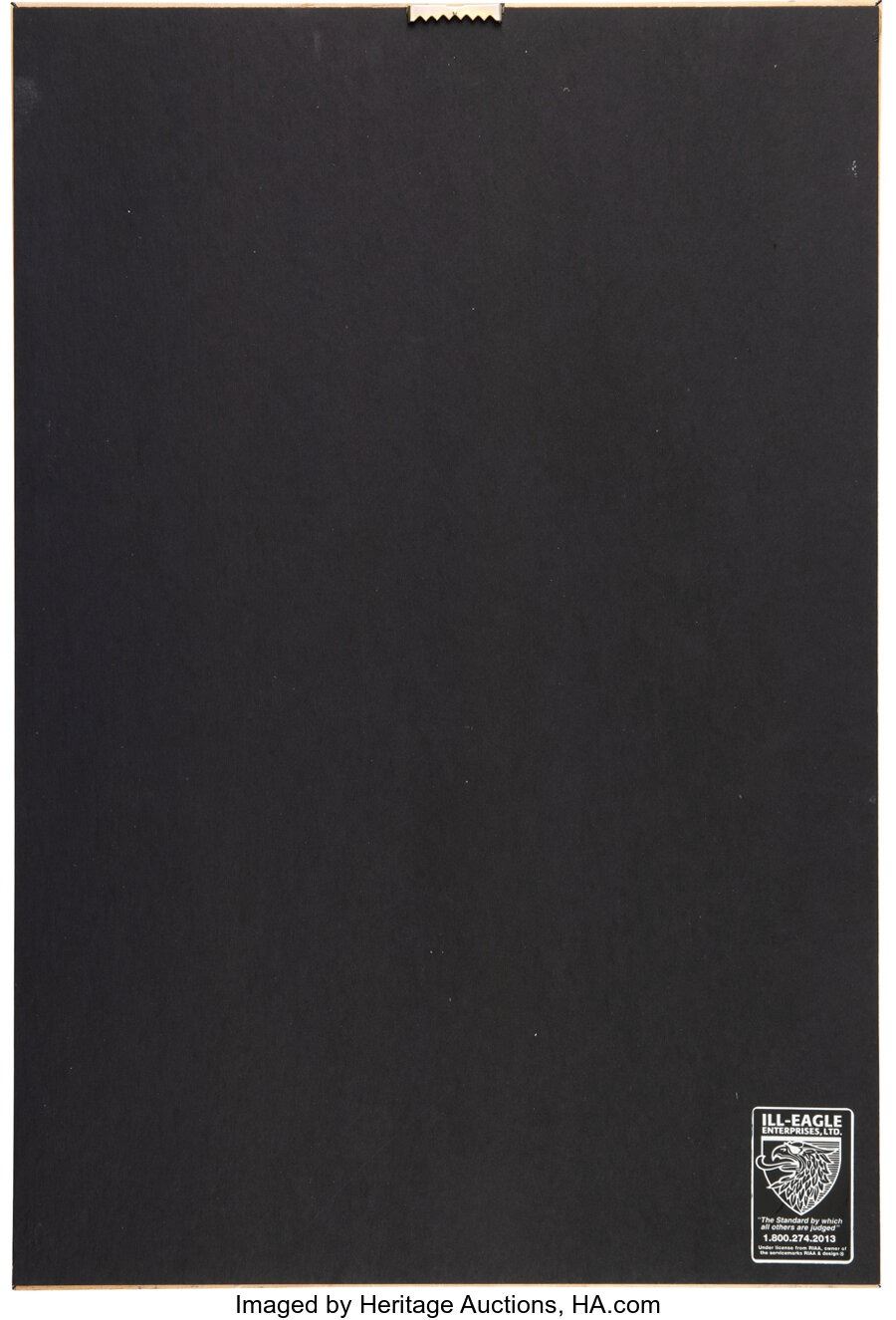 COMICS, COMIC ART, & ANIMATION ART TERM D: Material sold referencing a third-party grading service are sold ?as is? without our grading opinion and without any express or implied warranty. No returns of CGC-certified, CBCS-certified, Beckett-certified, PSA-certified, or Wata-certified material will be accepted for any reason. Auctioneer shall not be liable for any patent or latent defect or controversy pertaining to or arising from any encapsulated material. Certain warranties may be available from the grading services and Purchaser?s sole remedy shall be against the service grading the material. Purchaser is referred to relevant grading service for further details: Certified Guaranty Company, LLC (CGC), P.O. Box 4738, Sarasota, FL 34230; Comic Book Certification Service (CBCS), 4635 McEwen Road, Dallas, TX 75244; Beckett Grading Services, 4635 McEwen Road, Farmers Branch, TX 75244; Professional Sports Authenticator, P.O. Box 6180, Newport Beach, CA 92658; Wata, Inc. , 3101 East 52nd Avenue, Suite C, Denver, CO 80216. Even when the best shipping methods are used, CGC, CBCS, and Wata holders occasionally incur minor chipping and cracking during shipment; therefore, Heritage cannot guarantee the condition of these holders. If they are damaged in transit, Heritage will have them reholdered on the new owner?s behalf, or reimburse reasonable anticipated reholder fees, but will not accept returns due to holder damage that does not affect the grade or condition of the item itself.