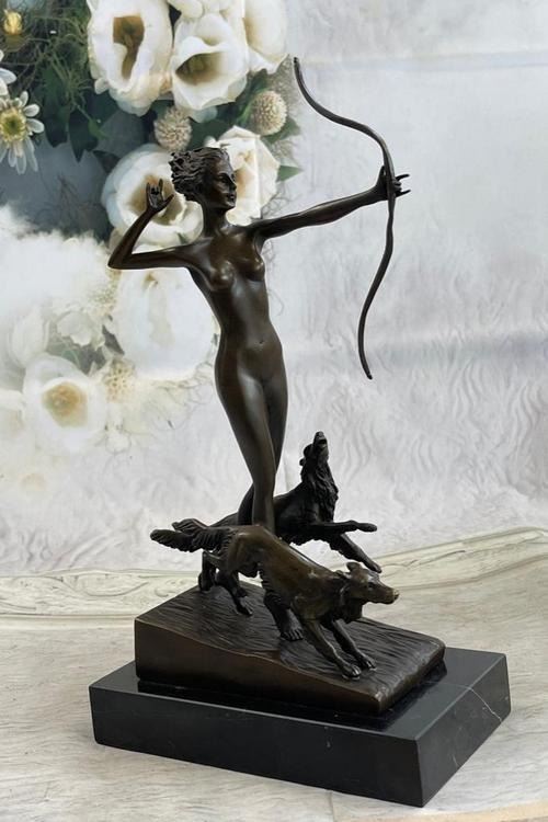 NUDE DIANA THE HUNTER GODDESS POPULAR BRONZE SCULPTURE