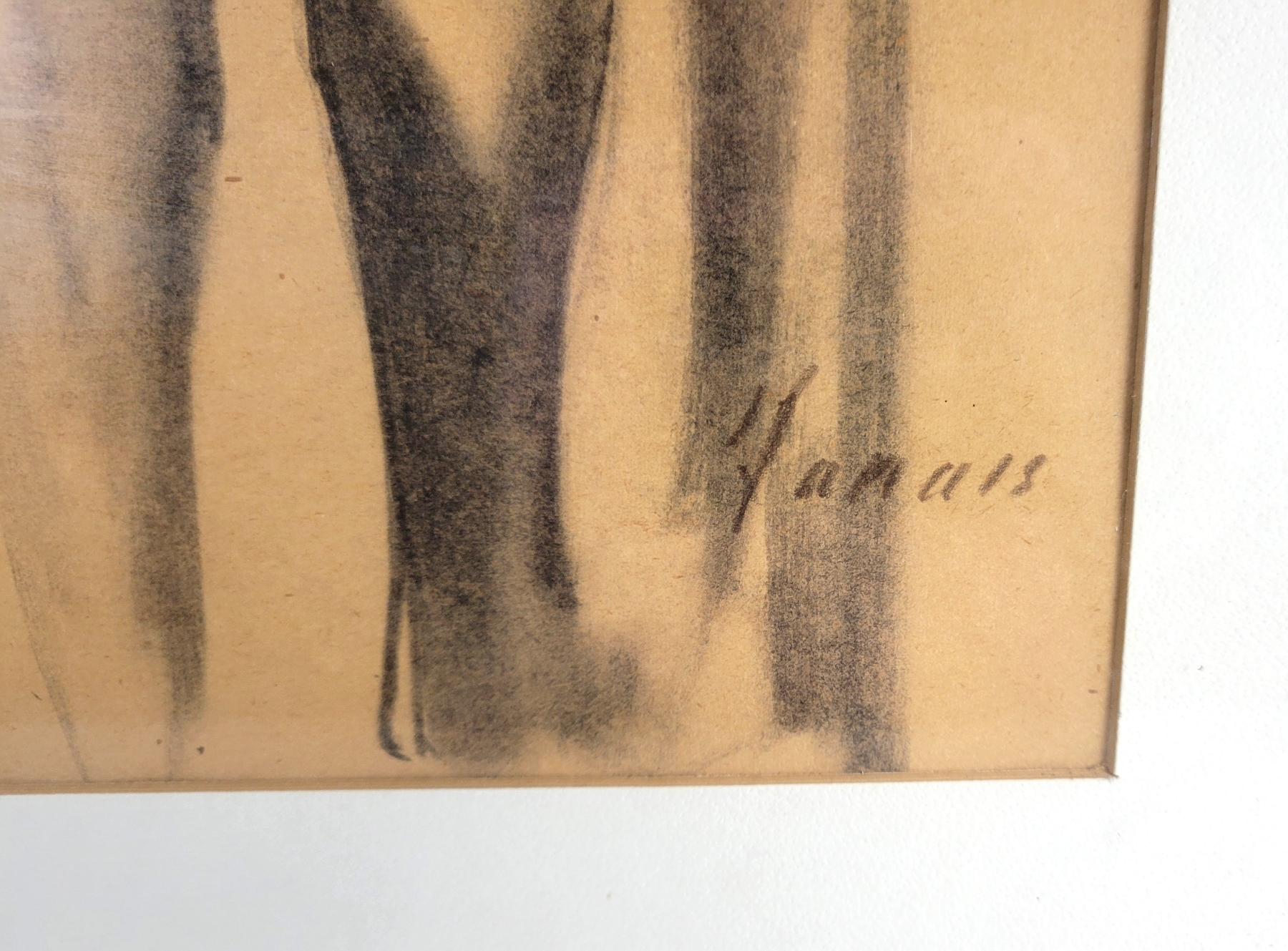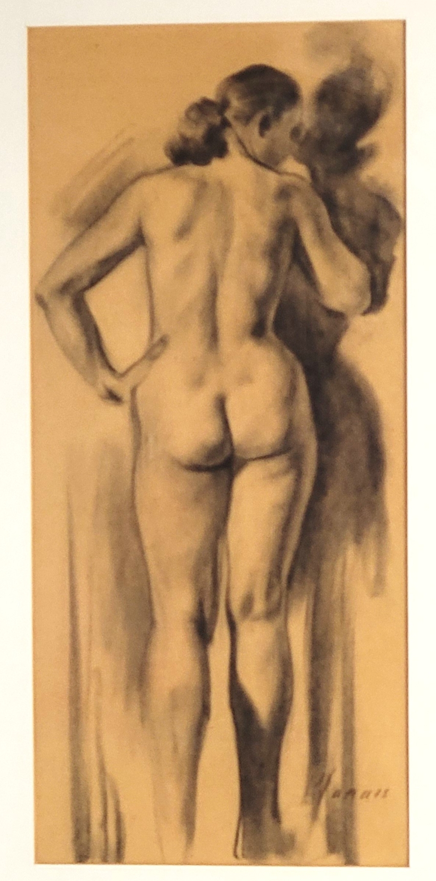NUDY STUDY BY YAMAIS(?) - FRAMED CHARCOAL ON PAPER