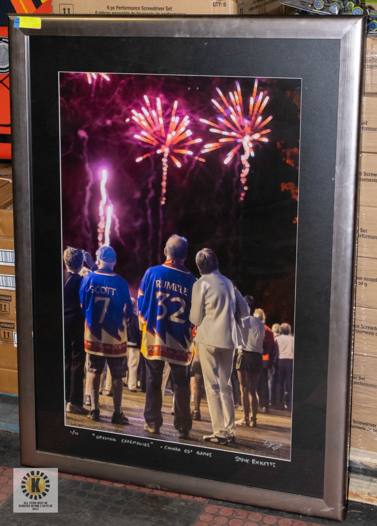FOR CANADA 55+ GAMES, FRAMED 34.5" X 46.5" **ALL ITEMS MUST BE REMOVED BY 5PM SATURDAY, APRIL 26TH 2025. ALL REMAINING ITEMS WILL BE SUBJECT TO A $6.00 PER DAY STORAGE CHARGE. ANY ITEMS REMAINING AFTER MONDAY, MAY 12TH 2025 WILL BE CONSIDERED FORFEITED. NO REFUNDS WILL BE ISSUED FOR FORFEITED ITEMS. TO SCHEDULE A PICK UP APPOINTMENT CLICK HERE