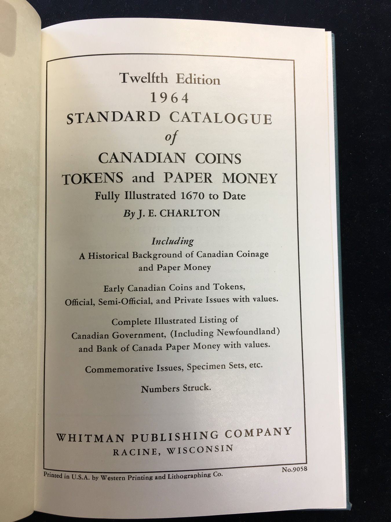 NICE HARDCOVER OF THE 12TH EDITION OF THE CHRLTON STANDARD CATOLOUGUE OF CANADIAN COINS,TOKENS AND PAPERMONEY