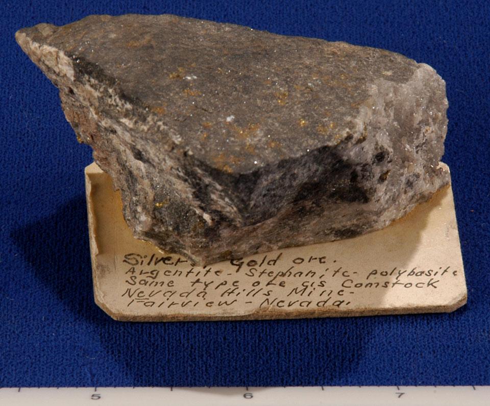 Nevada Hills Mine. Silver Gold Ore. Argentite, Stephanite, Polybasite. Same type as comstock ore.