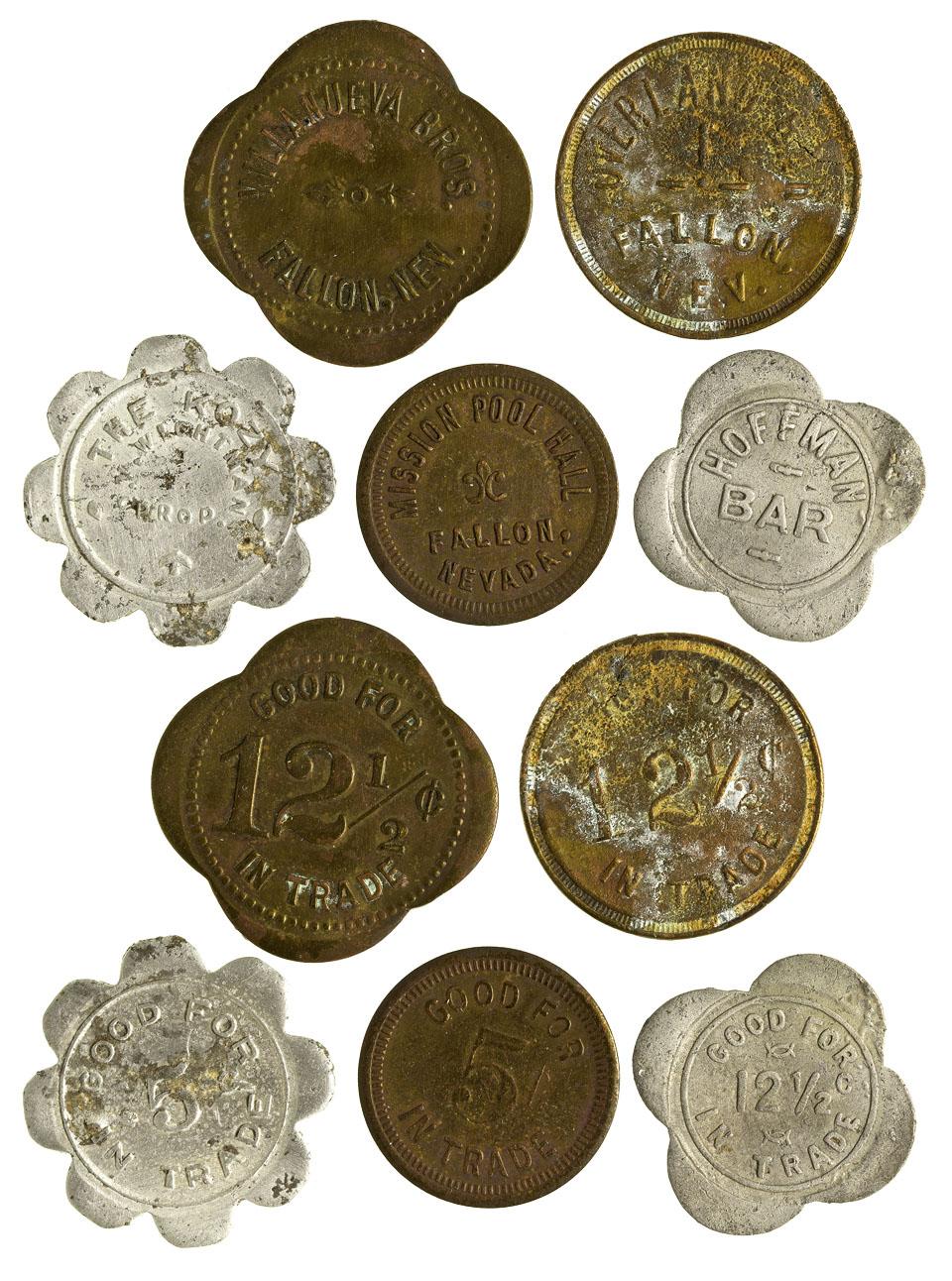 5 different tokens: The Kozy, Villanueva Bros., Overland Bar, Mission Pool Hall, Hoffman Bar.
