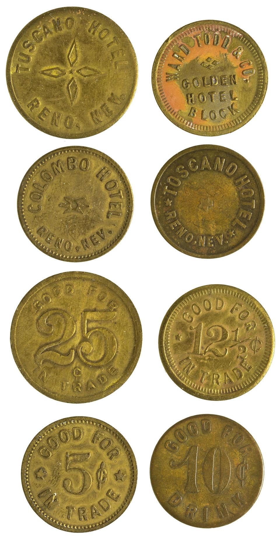 4 tokens: Toscano (2), Colombo Hotel, Ward Todd & Co.