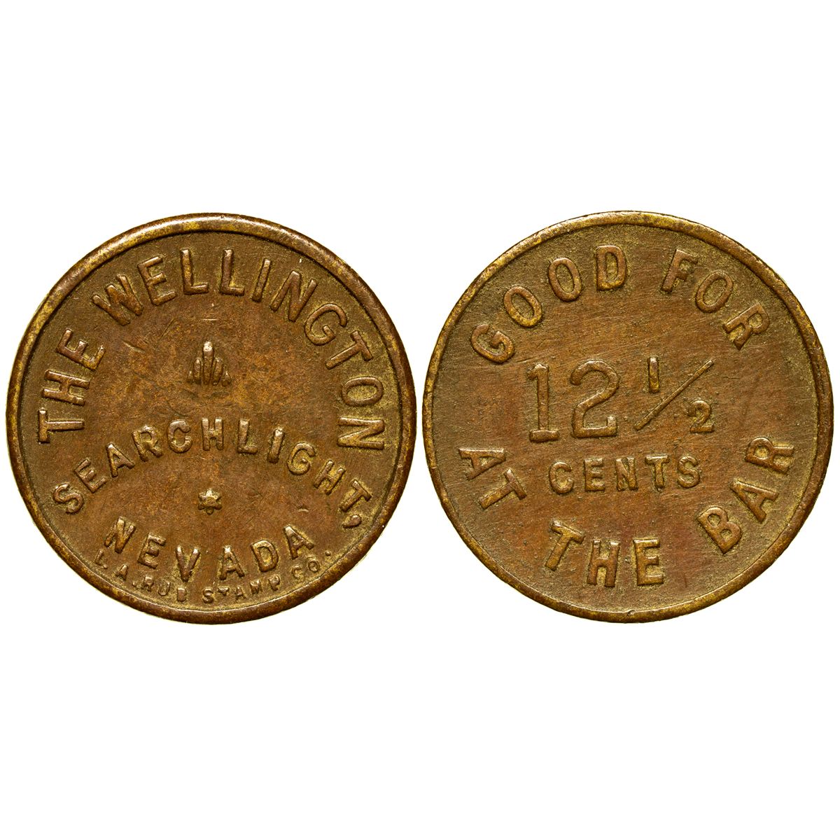 The Wellington. GF12 1/2c at the Bar. Choice. XF. Named for a mine and mining district from 1897. The name may honor an owner of a group of claims here, Lloyd Searchlight. A boom took place here in the early 1900s [Carlson, 1974].