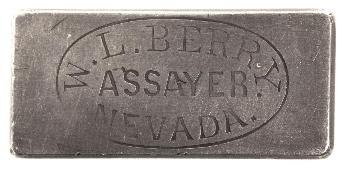 Research of this unique W. L. Berry ingot is difficult. He was not found in any of the standard references, which includes the 1867 Bean Directory of Nevada County and 1871 Mckenney Directories of Nevada County, California, the 1876 McKenney’s California Business Directory that covered Nevada County; or any of the Pacific Coast Business Directories (1867, 1871, 1875); the US Census data; the 1862, 1863 Kelley Directories of Nevada Territory, or subsequent Nevada business directories. The ingot was written up by us previously as Nevada City, California, but after much thought, I cannot rule out any Nevada state mining camp. The style of the ingot is 1860’s, possibly into the early 1870’s. The Nevada City guess was appropriate, as the name “Nevada” is very often used from that period from Nevada City. But further research opened up too many doors into both Nevada City and into Nevada mining camps as a whole.