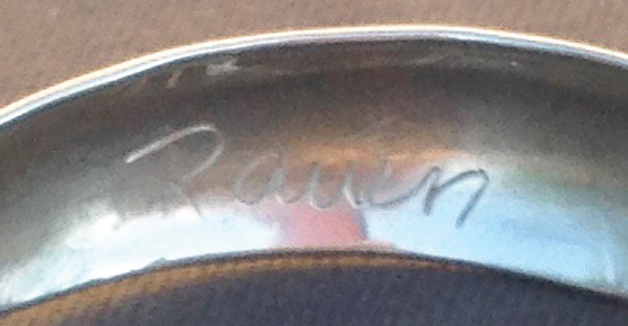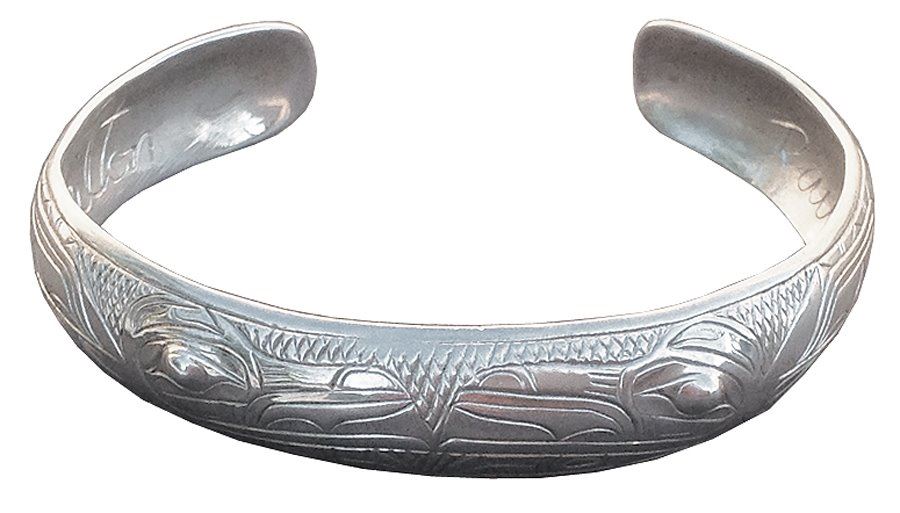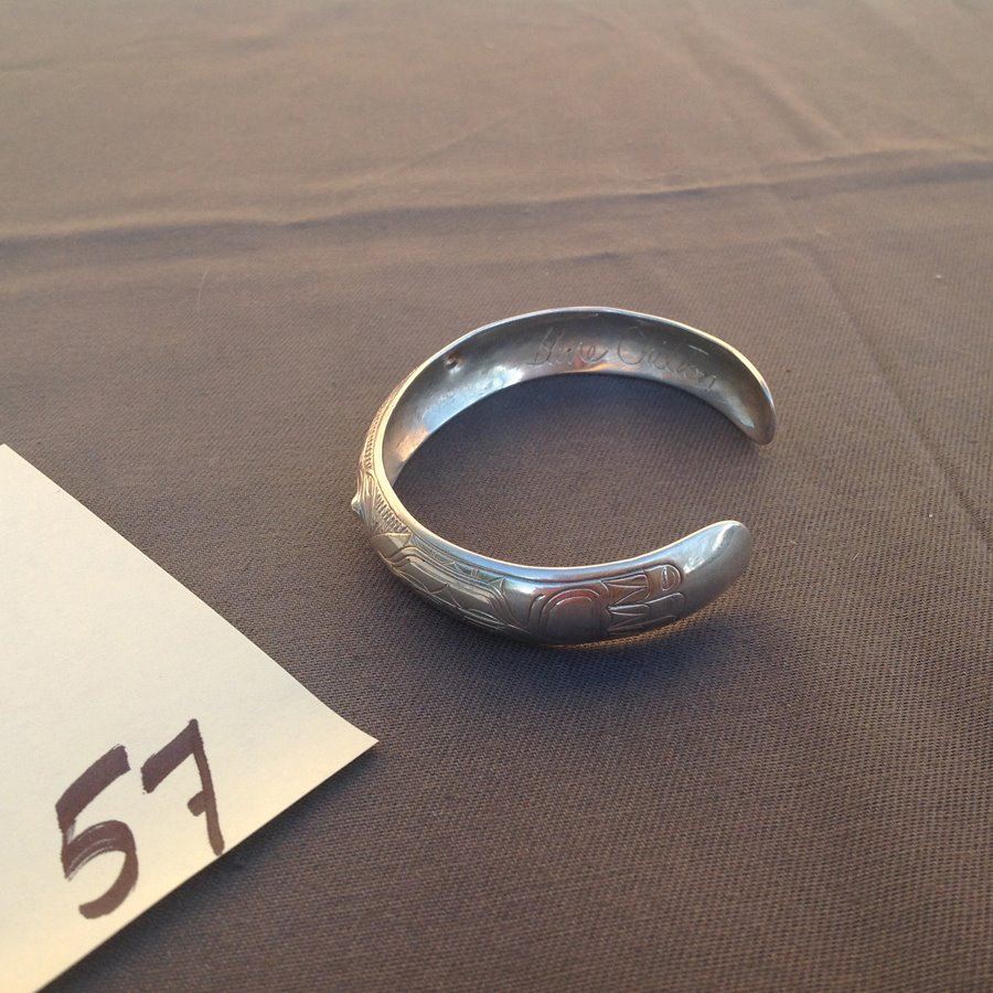 Fine hand shaped and carved all silver cuff bracelet done in raven design. From Ketchican, AK. Very good condition.,Ca. Early 2000s,5 1/4" + 1" x 1/2" w.