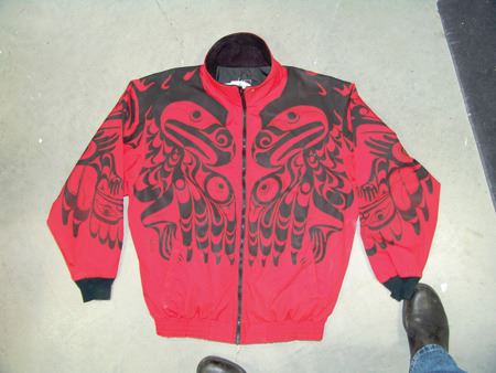 Late 1900s, Nice heavy cotton man's zip jacket with traditional design by Nytom, done in print. Good used condition. Men's XL