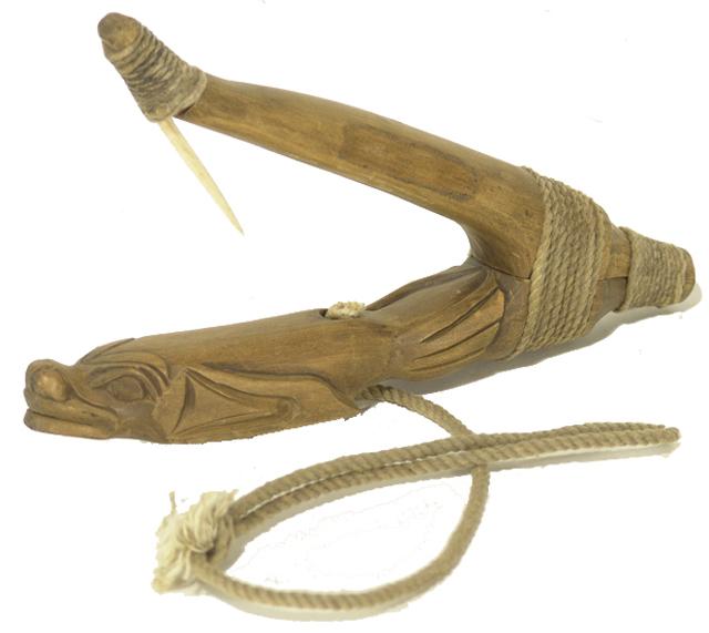 Circa 1970s, Ivan Otterlifter, Beautifully carved traditional alderwood hook with seal figure and ivory barb, signed "Coyote". 8" x 4"