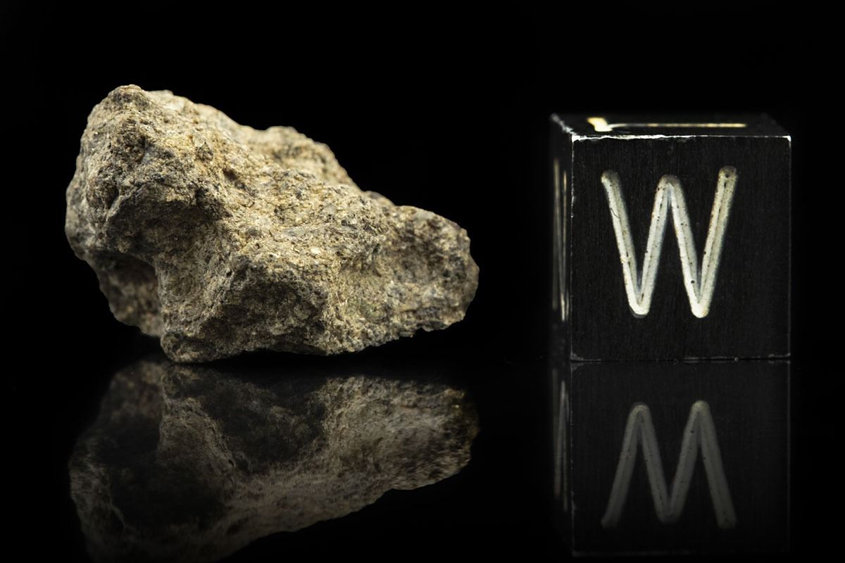 Northwest Africa (NWA) 7397 Martian (shergottite) meteorite fragment found near Smara, Morocco, in 2012, exhibiting a black fusion crust. The fragment weighs 3.3 grams and measures approximately 18 mm x 12 mm x 11 mm. Accompanied by a certificate of authenticity signed by Geoff Notkin of Aerolite Meteorites Inc. and the TV show Meteorite Men, as well as a specimen identification card. NWA 7397 was unequivocally identified as a piece of the 'red planet' by A. Irving and S. Kuehner at the University of Washington, Dept. of Earth and Space Sciences, Seattle. Pieces of the Mars are extremely rare and highly desirable—of approximately 61,000 meteorites that have been found on Earth, less than 200 have been identified as shergottite, or Martian. The class takes its name from the Shergotty meteorite that fell in India in 1865.