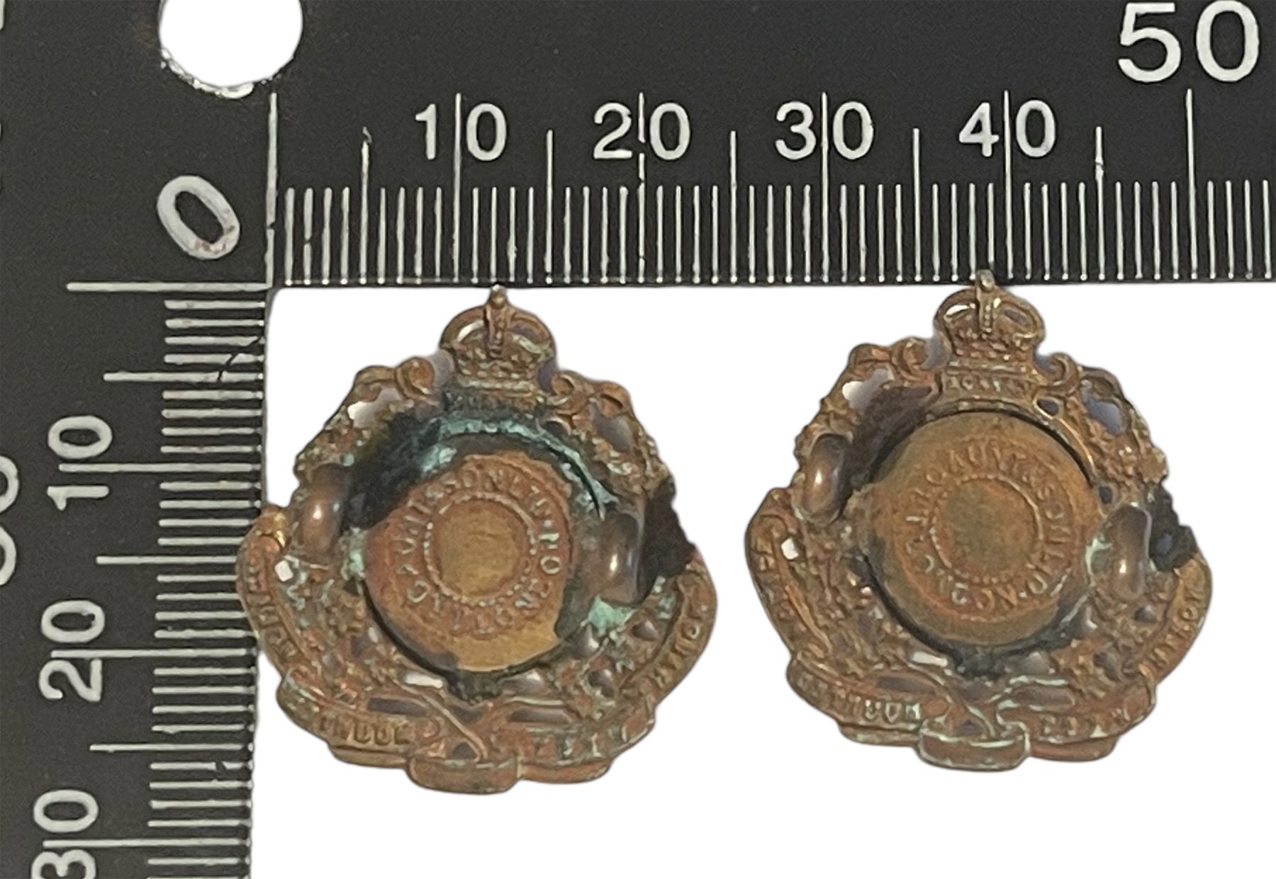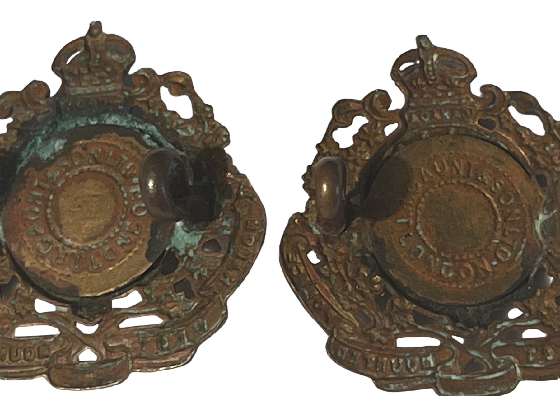 Darkened Brass metal, lug fasteners. A real nice matched pair. Makers disk on each.