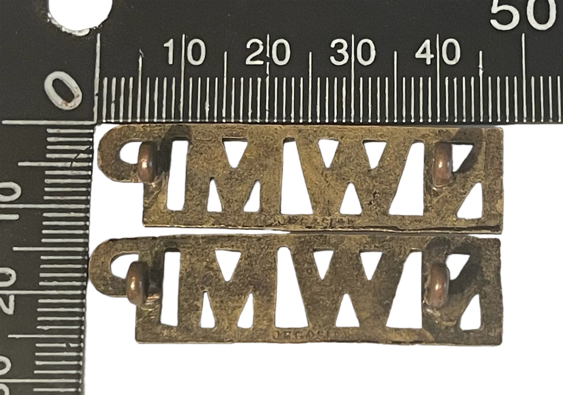 Blacked Brass metal showing brass, lug fasteners. With scarce abbreviated makers mark.