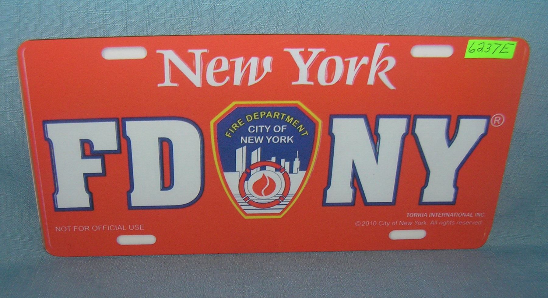 NY FDNY License plate size retro stylesign est. value $25.00-$30.00
