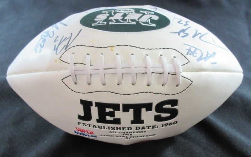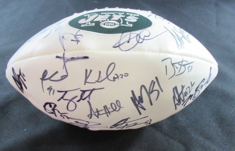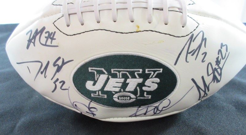 STEPHEN HILL, SHONN GREEN, NICK FOLK, DAVID HARRIS, BRYAN THOMAS plus 13 OTHERS ON OFFICIAL JETS FOOTBALL. NO COA. EST 500.00-700.00