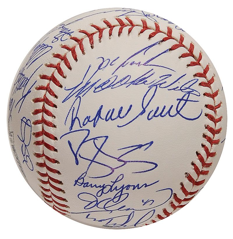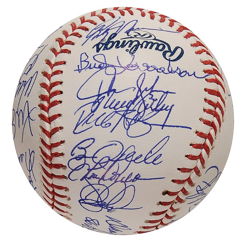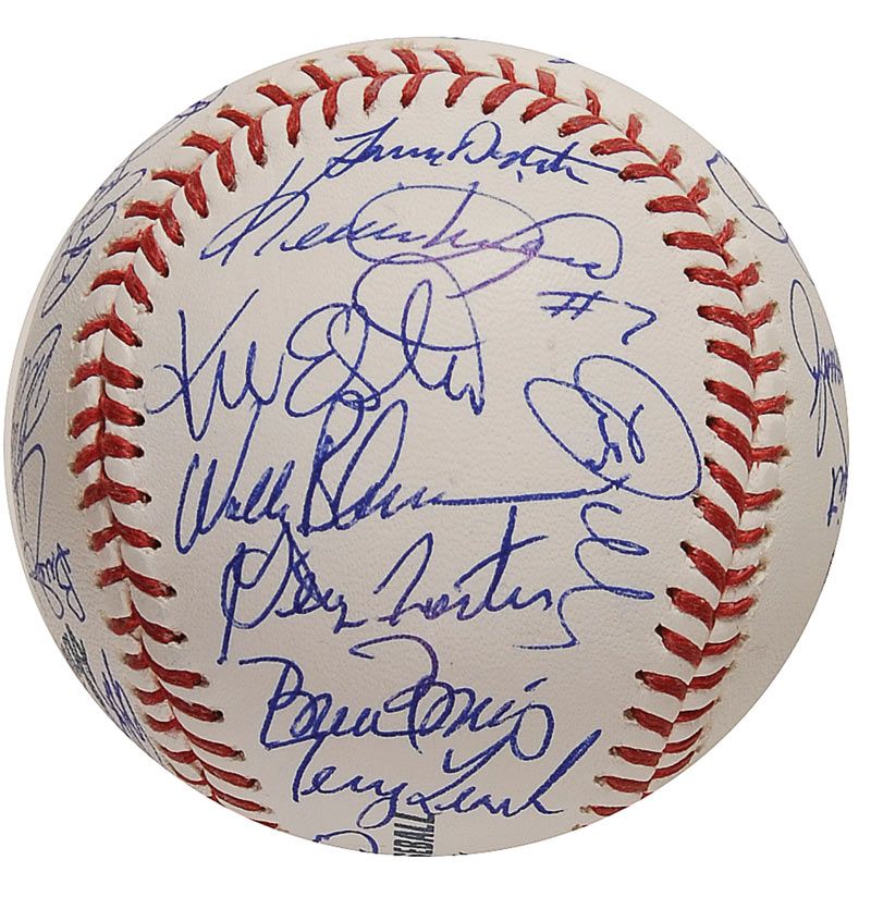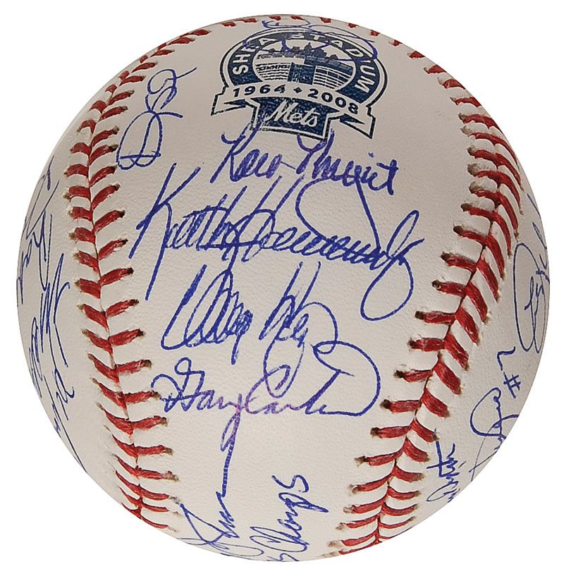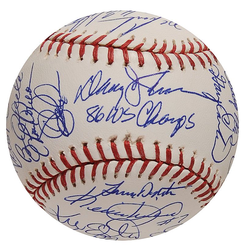 Official Rawlings Major League Shea Stadium commemorative baseball signed in blue ballpoint by 31 members of the 1986 World Champion Mets. Signers include: Davey Johnson (ss), Gary Carter, Darryl Strawberry, Keith Hernandez, George Foster, Mookie Wilson, Kevin Mitchell, Wally Backman, Lenny Dykstra, and Barry Lyons. In fine condition.