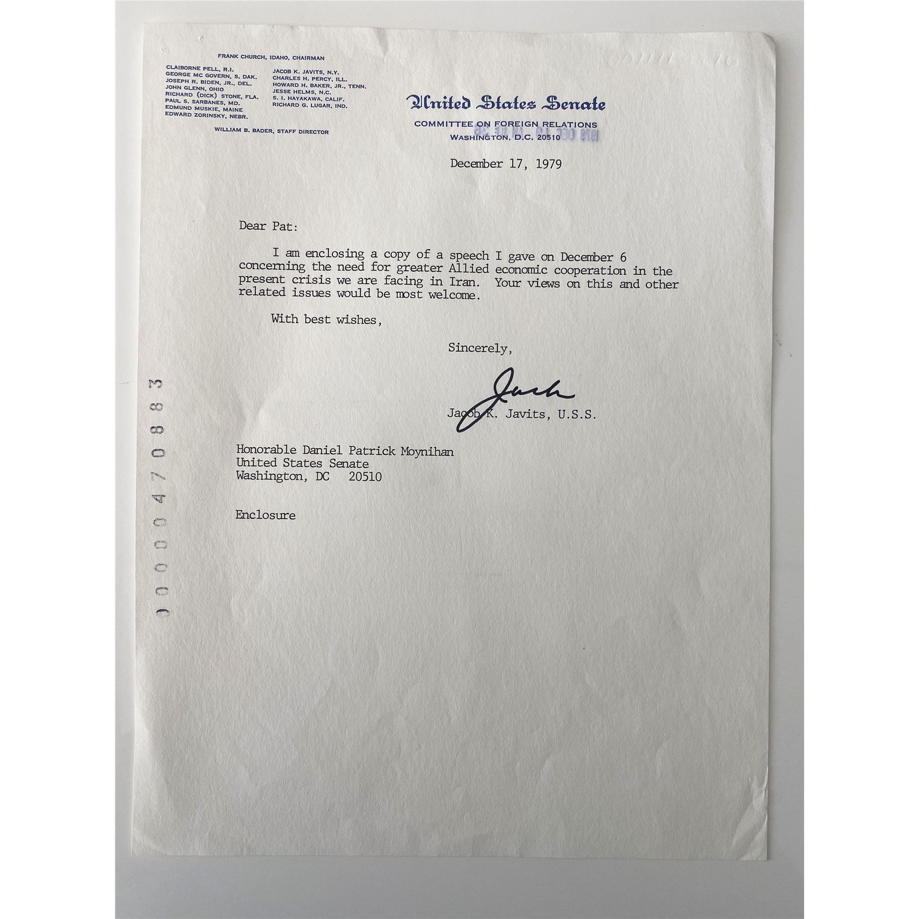 NY Senator Jacob K. Javits signed letter.8x11 inches
