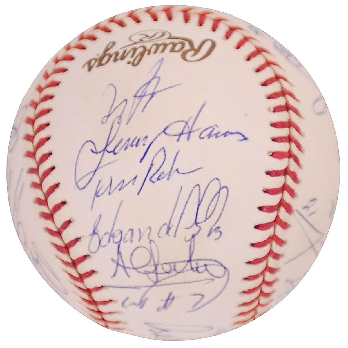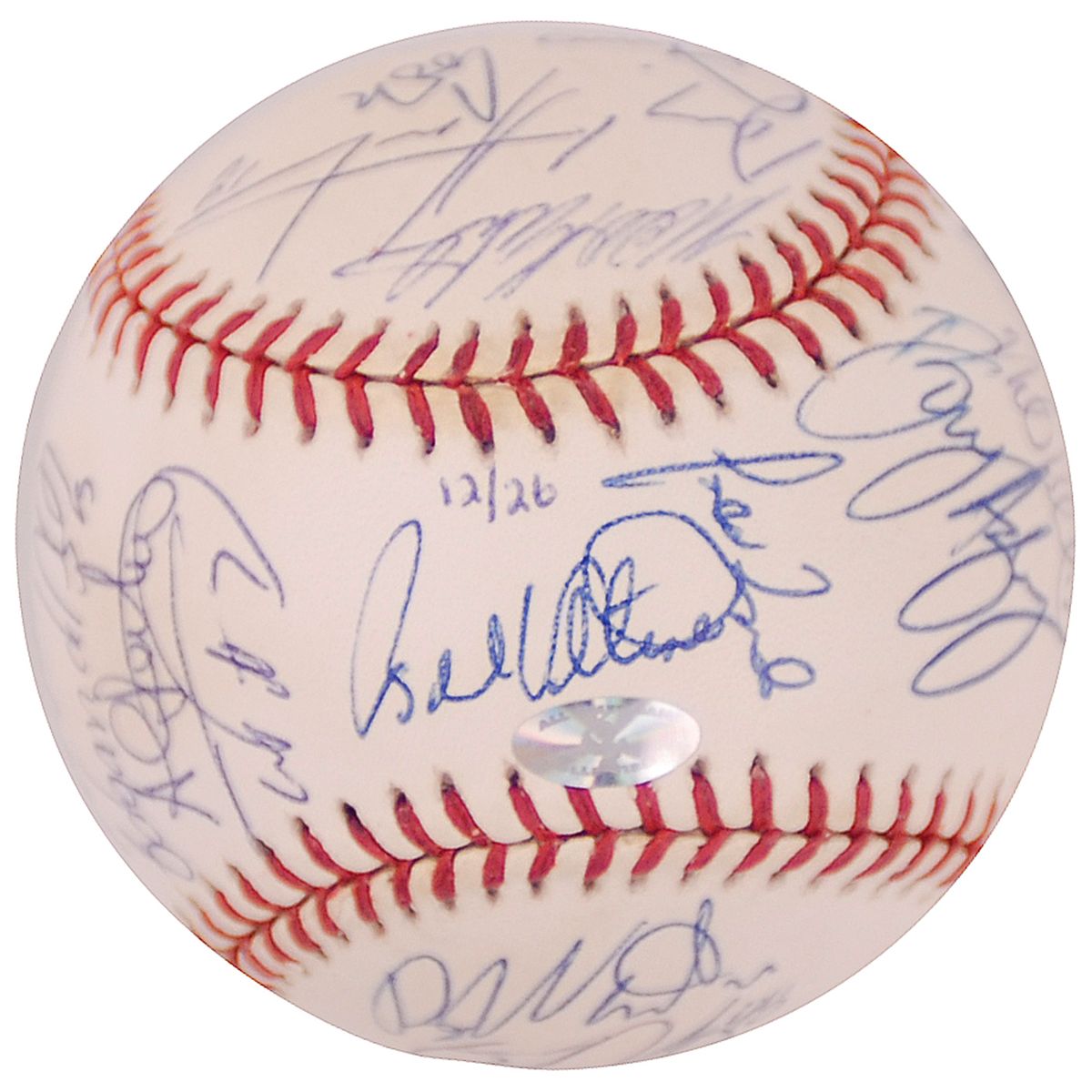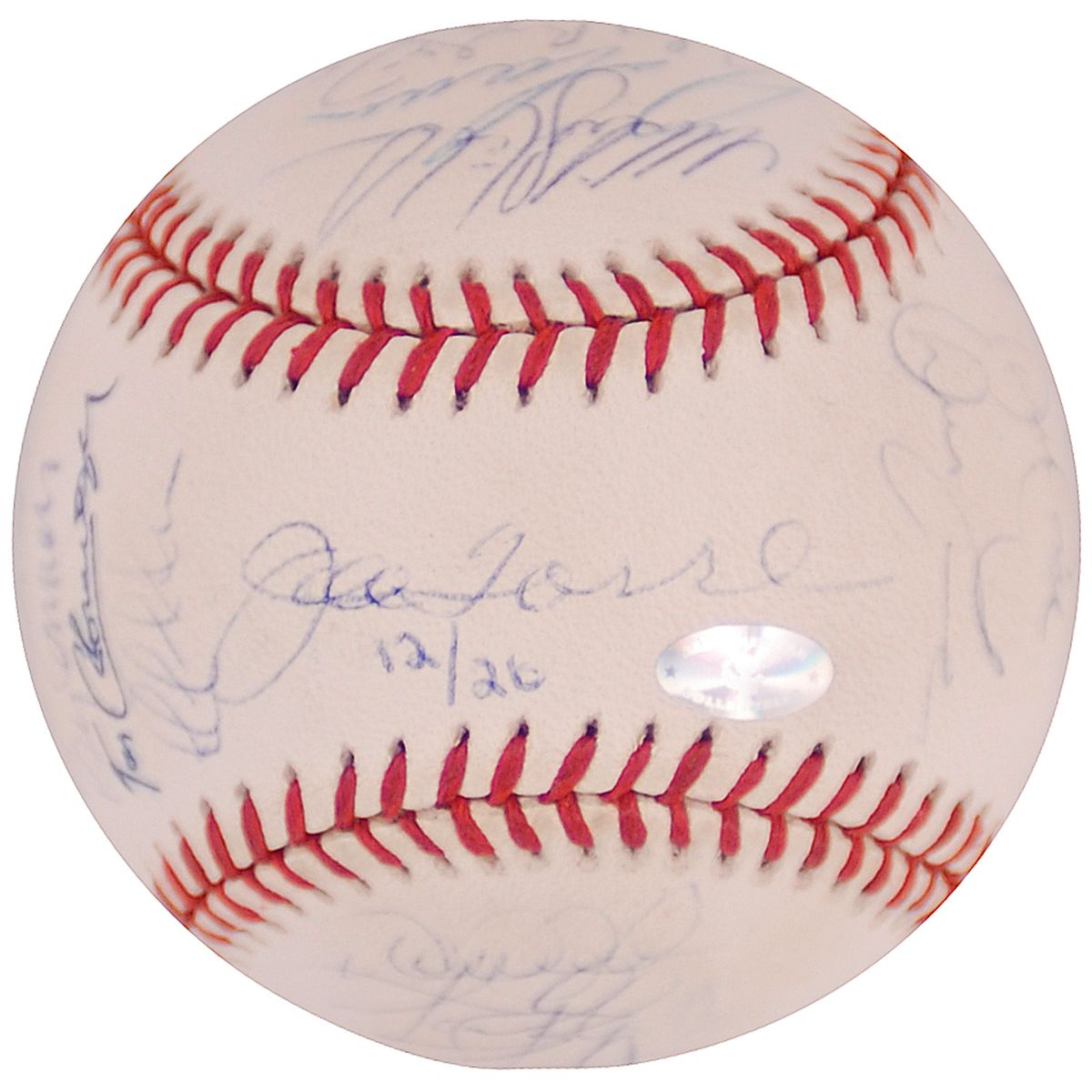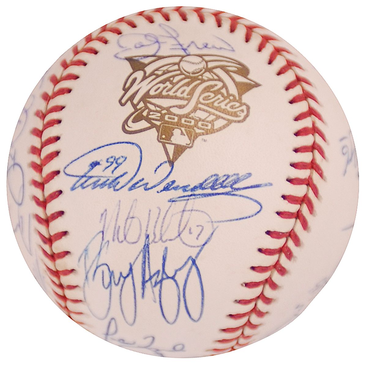Two limited edition Rawlings 2000 World Series baseballs, #12/26, one signed by 29 members of the World Champion Yankees including: Joe Torre (ss), Derek Jeter, Roger Clemens, Paul O’Neill, Andy Pettitte, Mariano Rivera, David Justice, and Chuck Knoblauch; the other signed by 24 members of the National League Champion Mets, including: Bobby Valentine (ss), Mike Piazza, John Franco, Al Leiter, and Robin Ventura. In fine condition, with a couple mild spots of toning to Mets ball. The Yankees beat the Mets four games to one two win their third consecutive world championship.