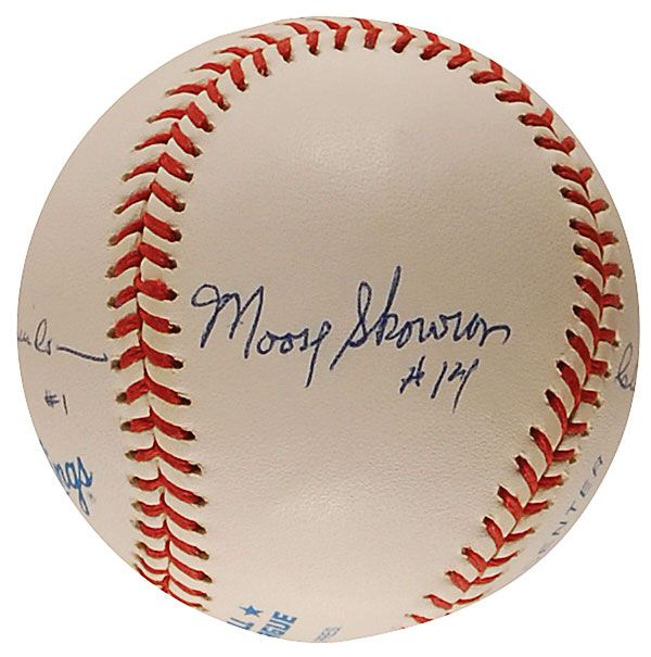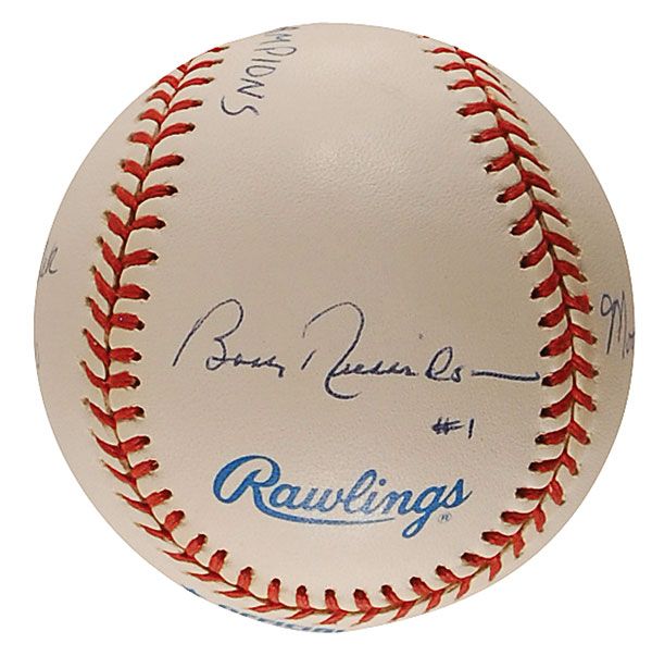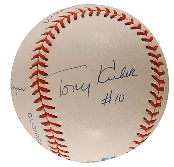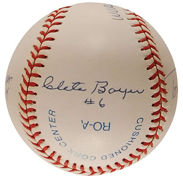 Official Rawlings baseball signed in blue ballpoint on the side panels by Clete Boyer, Tony Kubek, Moose Skowron, and Bobby Richardson, and labeled on the sweet spot in an unknown hand, “1961 World Champions.” In fine condition.