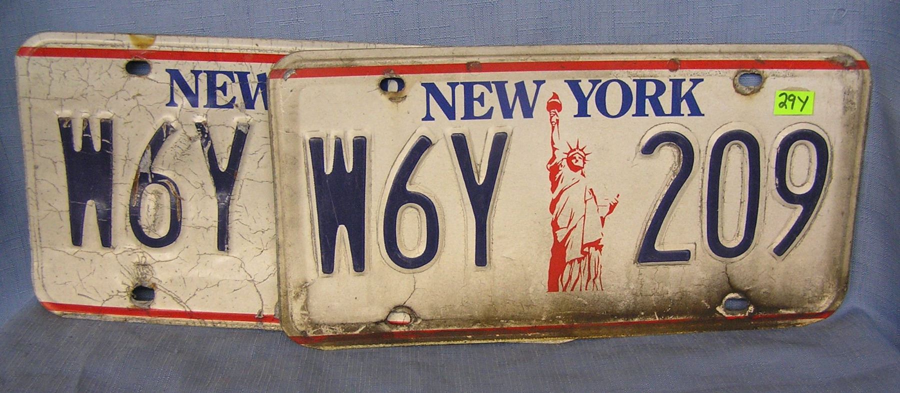 Pair of vintage NY license plates picturing the Statue of Liberty est. value $50.00-$60.00