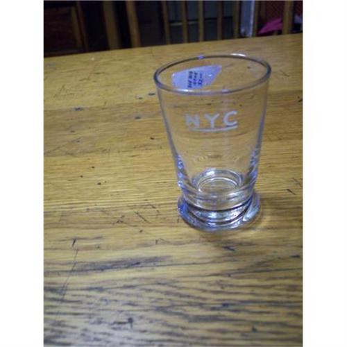 This is a glass marked NYC on the front from the railroad.Very hard to photograph clear glass.