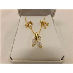 Joshua Lieff Designer Yellow Gold Plated Necklace/Pendant and Earrings with Clear Swarovski Crysta