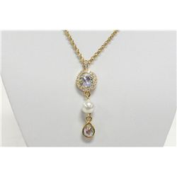 Michelle Merizz Designer Gold Plated Necklace and Drop Style Pendant With Clear Swarovski Crystals
