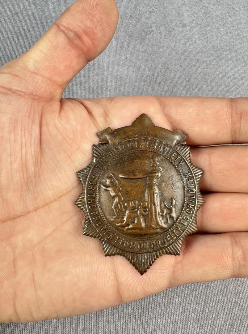 The New York Society for the Prevention of Cruelty to Children. 2" by 2 1/4". Missing pin back