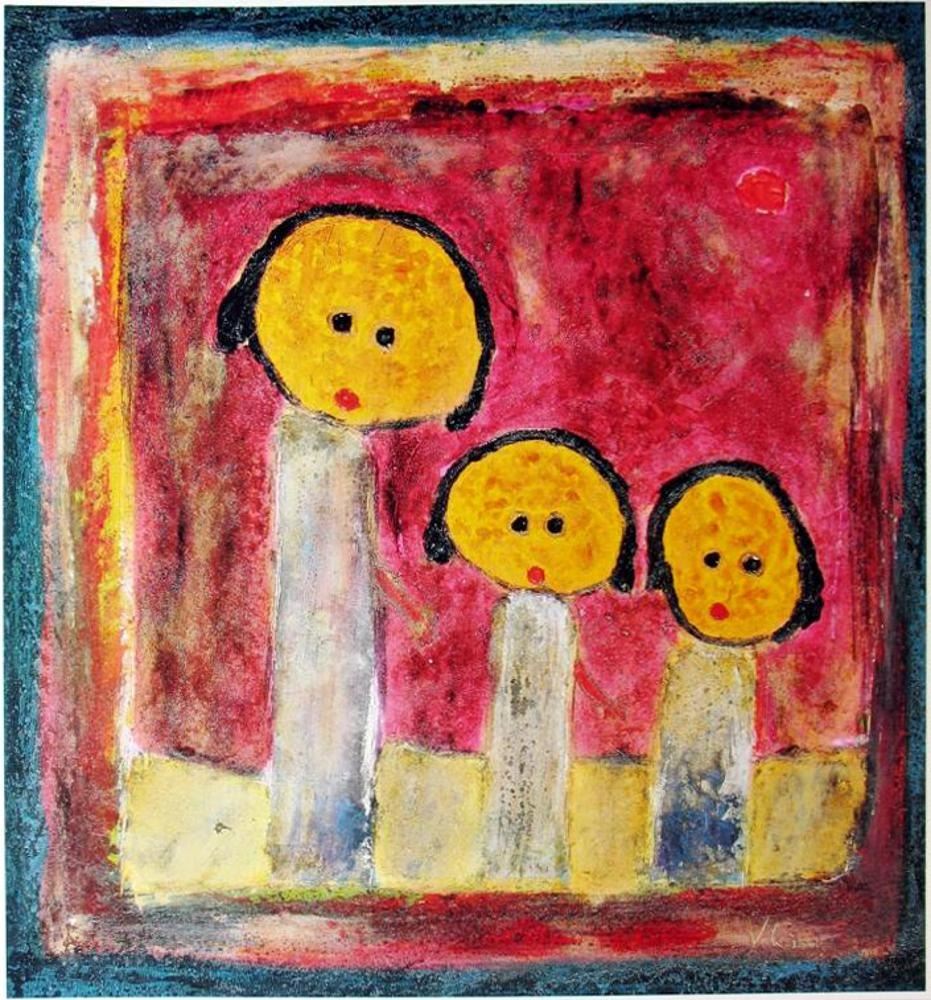 Naïve Abstract Figurative Modern Poster Colorful | Unframed Size: 23X22 | Value: $130