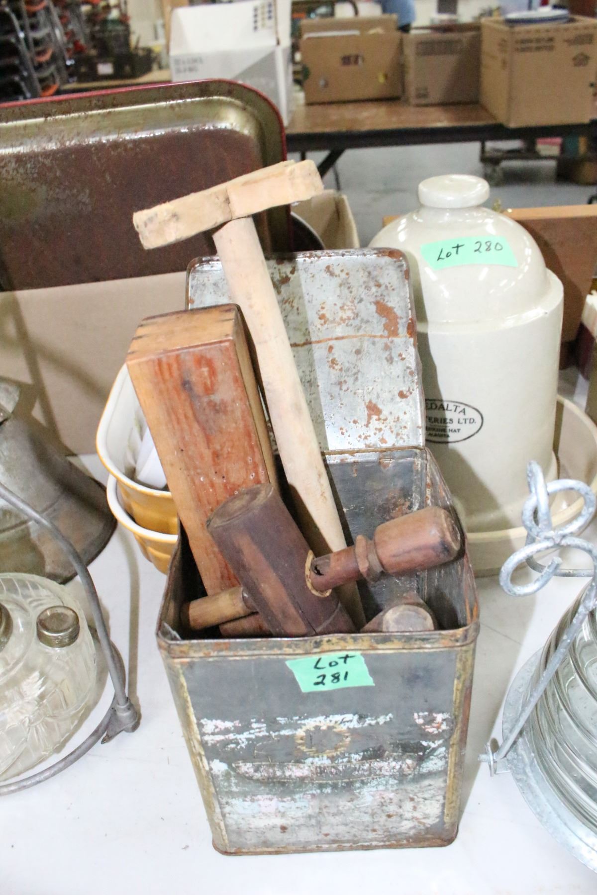 Nabob Tin with 2 Spigots, Wooden Box & Churn Plunger