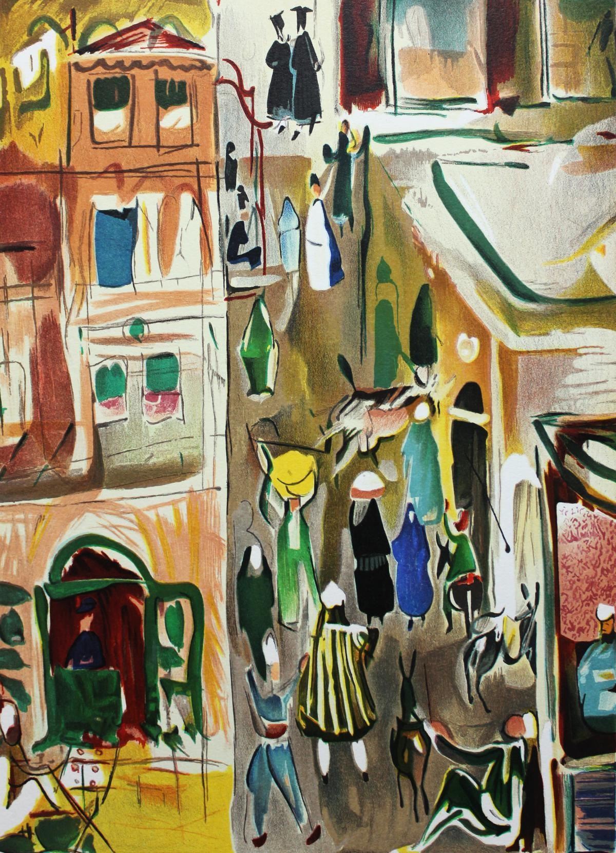 Artist: Nachum Gutman. Medium: Original Lithograph. Title: A Street In Jaffa. Size (Unframed): 27" x 20". Certificate of Authenticity: Is Included.