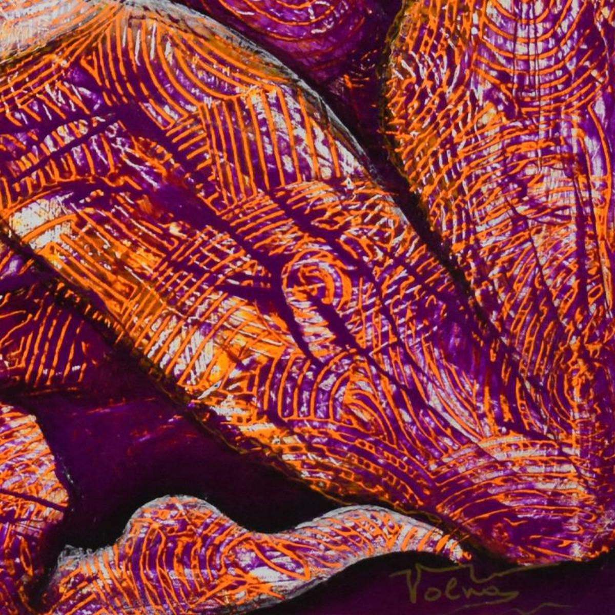 "Gravitation of the Sun" is an original acrylic painting on canvas by Nadia Volna, hand signed by the artist. This piece comes gallery wrapped. This piece is painted with light-reactive black light paint that reveals brilliant colors when viewed under incandescent light. This piece comes with a blacklight flashlight (batteries not included). Includes Letter of Authenticity. Measures approx. 36" x 36" (image). Reference #: 255503