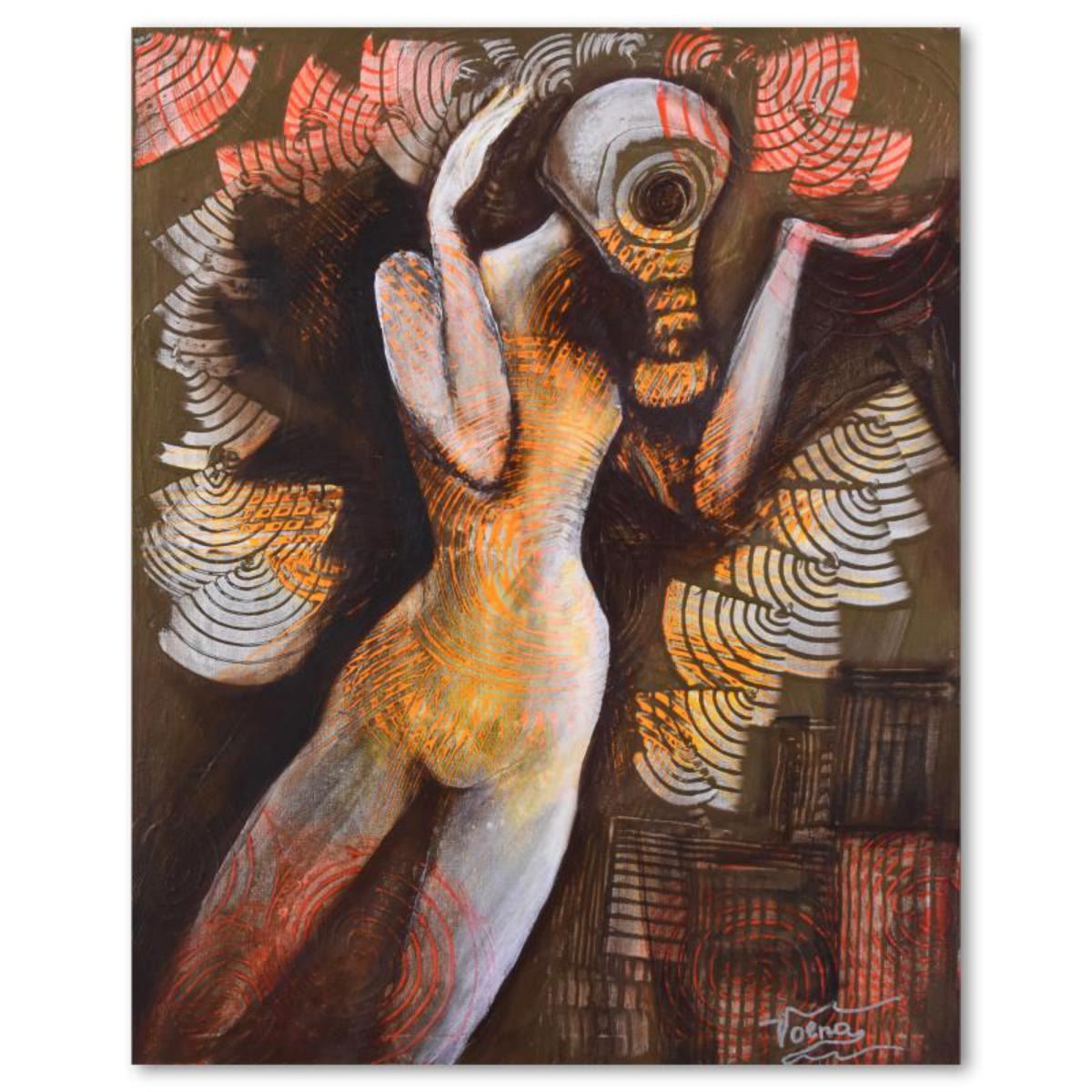 Nadia Volna, "Sign of the Times" Original Acrylic Painting on Canvas, Hand Signed with Letter of Aut