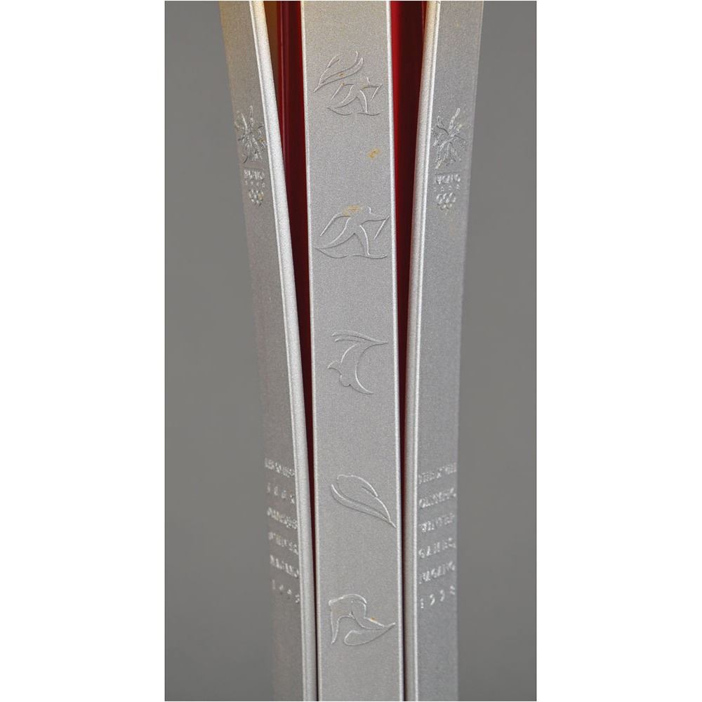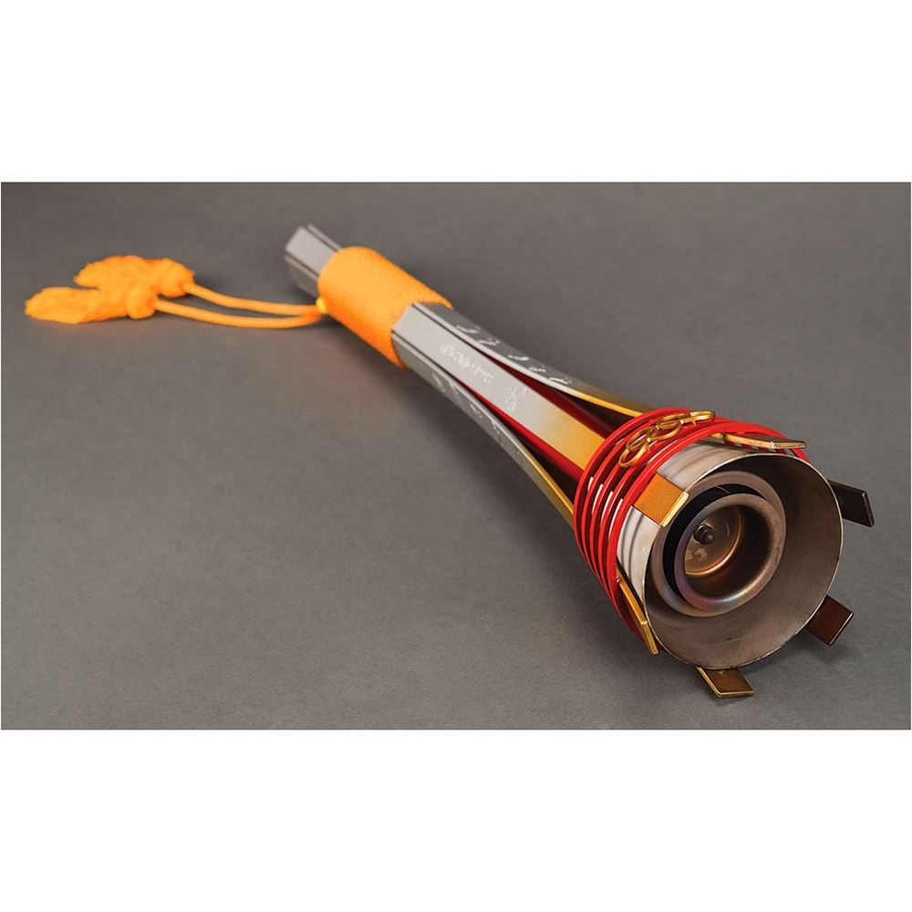 The Olympic flame arrived in Tokyo on December 23, 1997, and was soon split into three flames at a ceremony in the Yoyogi Athletic Park on January 4, 1998. They were taken by plane to three destinations—the Eastern Japan route (Hokkaido), the Pacific Ocean route (Kagoshima), and the Sea of Japan route (Okinawa)—and, upon entering Nagano Prefecture from the north, south, and east, the flames were reunited in Central Square on February 6th. The relay lasted a total of 51 days, traveled over 3,400 km, and featured over 6,900 torchbearers. The Games themselves were highly successful, and witnessed the introduction of women's ice hockey, curling, and snowboarding. Additionally, National Hockey League players were allowed to participate in the men's ice hockey event. A scarce and brilliant Olympic torch that gracefully blends Japanese tradition with a modern touch.
